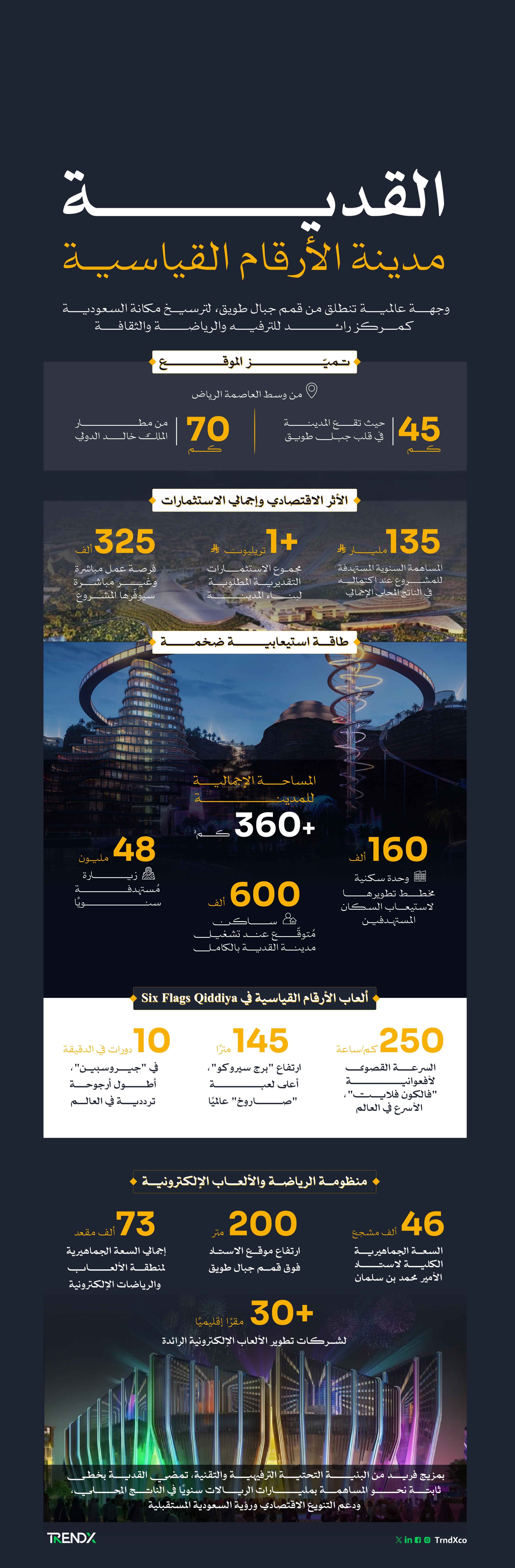 تُعد مدينة القدية مشروعًا رائدًا يهدف لتحويل منطقة جنوب غرب الرياض إلى مركز عالمي للترفيه والرياضة والفنون. تم تصميم المدينة لرفع جودة حياة المواطنين، وتقديم تجارب غير مسبوقة للزوار من كل أنحاء العالم، وذلك تماشيًا مع مستهدفات رؤية السعودية.