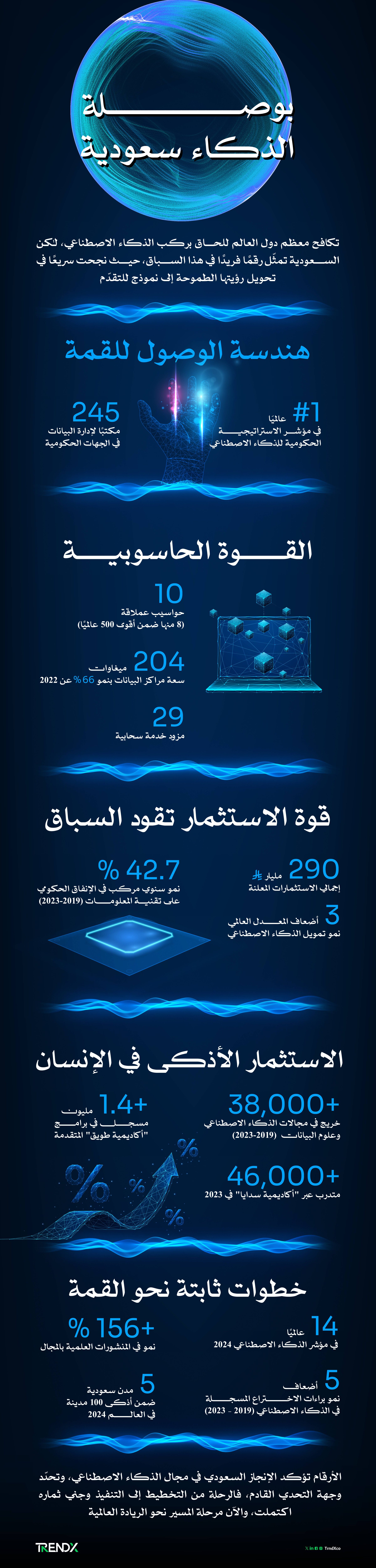 أثمر هذا التوجه عن نتائج لافتة، حيث قفزت المملكة إلى المركز الرابع عشر في مؤشر الذكاء الاصطناعي العالمي لعام 2024، متقدمةً على دول مبتكرة مثل فنلندا والنرويج.