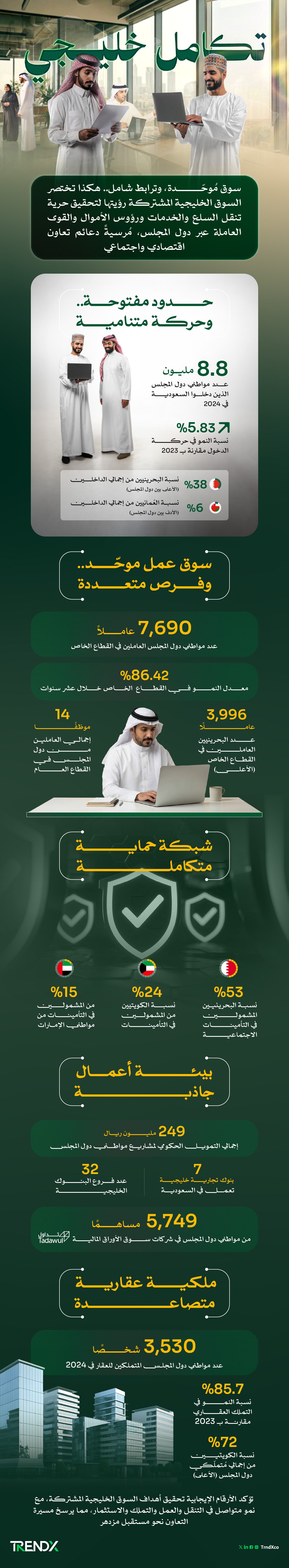 أرقام تعكس نجاح التكامل الاقتصادي والاجتماعي بين دول المجلس، وتؤسس لمستقبل مشرق من التعاون المشترك.