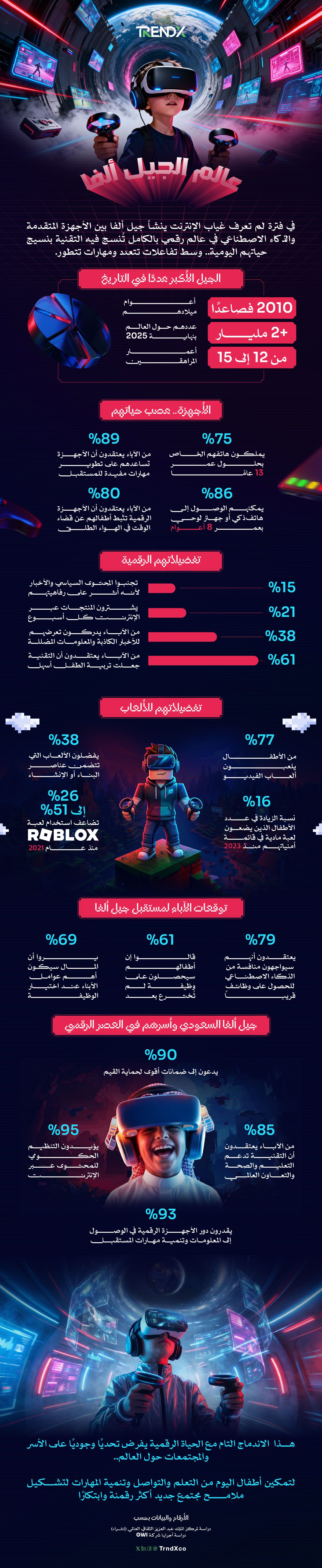 يُولد جيل ألفا في زمن لم يعرف انقطاعًا عن الإنترنت، حيث تتداخل التقنيات المتقدمة والذكاء الاصطناعي مع تفاصيل حياتهم اليومية بشكل كامل.. يعيش هؤلاء الأطفال في عالم رقمي يتيح لهم فرصًا واسعة للتفاعل والتعلم وتنمية المهارات منذ سن مبكرة، مما يجعلهم أكثر استعدادًا للتكيف مع مستقبل سريع التغير.
